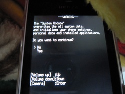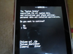 system updateに本体▼キーで送り、カメラキーを押す