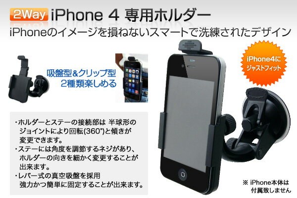 【新製品30%OFF】iPhone4用2WAY携帯ホルダー(車載ホルダー/ナビホルダー/カーアクセサリー/iPhoneアクセサリー)★洗練されたシンプルデザインで大人気!! [C20019] 1380円